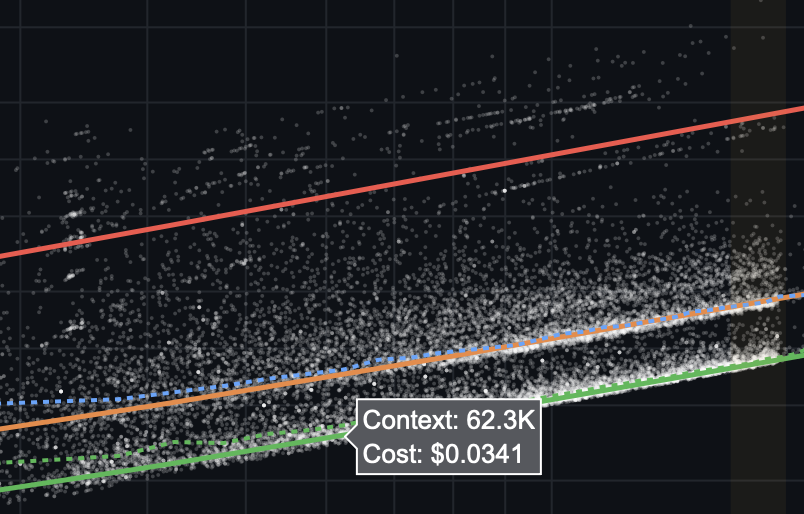 Real data from 315 Claude Code sessions reveals how context size, caching, and tool-use chains shape API costs. Interactive chart with 20K+ data points.